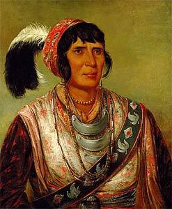 The deception generated a national outcry, and many people came to visit him, including the famous artist George Catlin, who persuaded him to pose for a painting. So many painters wanted to capture Osceola’s likeness, in fact, that he sat for more than one at a time. But Catlin was his favorite and they often talked late into the night. A little more than a month after his arrival in South Carolina, on Jan. 30, 1838, he was found dead in his prison cell, the official verdict being malaria, although others say he died of a broken heart. He was buried with full military honors. But his head was later removed and embalmed, its whereabouts being today unknown. Osceola’s death produced an outpouring of engravings and paintings, many of them bogus. Catlin’s was by far the best, catching the warrior with a finely detailed elegant gracefulness. Among the lesser works were widely circulated portraits showing Osceola dressed in Plains Indian-style buckskins with tipis in the background, a form of shelter Southeastern Indians would not recognize. You can see a small collection of these portraits and descriptions of them at this excellent web site. – Meteor Blades