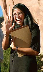 On hand for the event was Hilary Tompkins (Navajo), Solicitor General of the Interior Department. She helped work out the details of the settlement. “[W]hen I say the word trust, I don’t mean the legal definition of that word, I mean the dictionary’s definition of that word-assured reliance on the integrity, veracity, justice, friendship, or other sound principle of a person or thing […] May we walk together toward a brighter future, built on trust, and not acrimony,” she said.