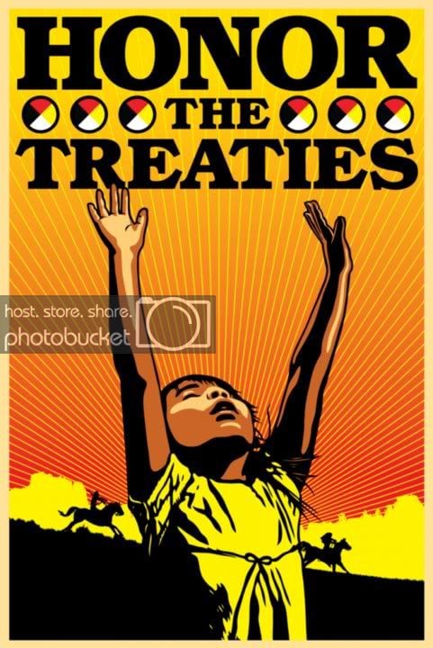 On a positive note for Honor the Treaties, the posters are getting righteous visibility around the nation being used by activists at the XL Pipeline protests.