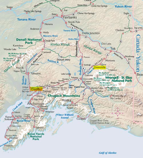 Chistochina is located at Mile 32.7 on the Tok Cut-off Road near the base of Mount Sanford and was originally an Athabascan fish camp along the Copper River. Later, during the Gold Rush to the Eagle area, the miners at Chistochina made a trail from Valdez to Eagle. A lodge was constructed to provide services to travelers heading to and from the gold fields. Prospectors also mined in the hills around the Chistochina area and found gold along the Upper Chistochina River and it’s runoff creeks. Chistochina Lodge has since burned down, but the small community hosts a cafe, bar, campground, bed and breakfast and gas station.