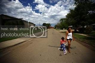 Neleigh Driving Hawk is 3 years old and full of the innocence and beauty of childhood. She likes to ride her tiny bicycle on the ragged streets of the Lower Brule Reservation. But all around her are examples of what her life may one day be.