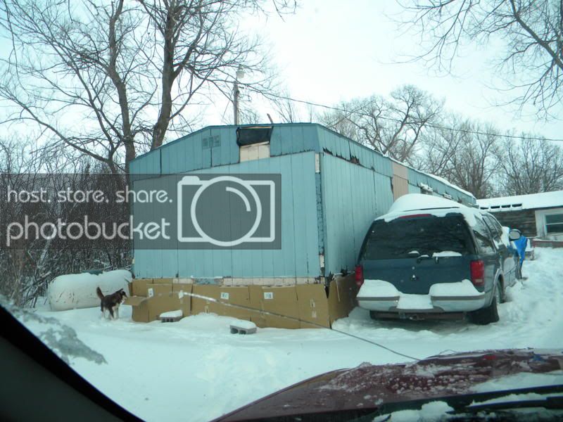 Note make shift cardboard skirting around trailer.