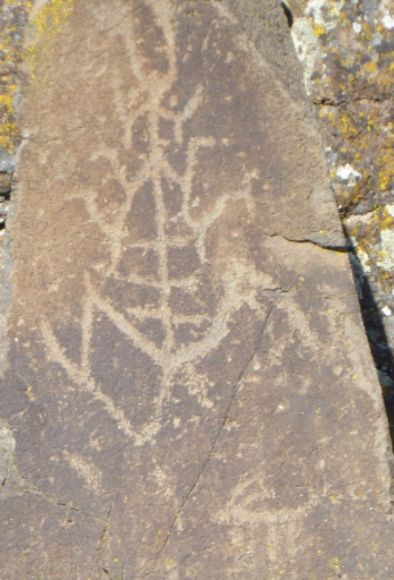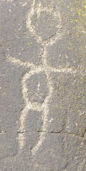 “The most common Columbia Plateau tradition images across the region are stick figure humans, simple stick figure or black body animals, rayed arcs, rayed circles, dots, tally marks, and a variety of simple geometric designs.”