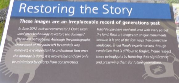 Please respect the sacred nature of the images and the rights of the First Peoples as they practice their religious ceremonies at this site. Please do not disturb offerings left by First People or touch or make rubbings or casts of the images. Also, because this site is intended to be a place of prayer, please treat this area as you would any other place of worship.”