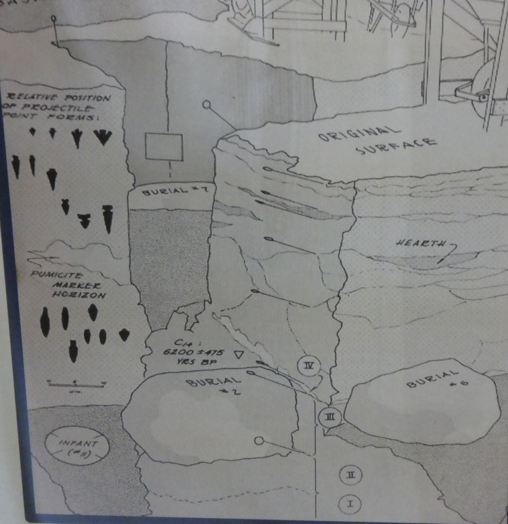 photo P1080033_zpsphxgioeb.jpg Shown above is the stratigraphy of the Marmes Rockshelter.  photo P1080034_zpsl7q8fvdp.jpg Shown above is another diagram of the site.  photo P1080027_zpsykjlxkev.jpg  photo P1080028_zpsr7und7bq.jpg Shown above is a pestle used for grinding seeds and nuts, and a hammer stone.  photo P1080035_zpsoewyjfua.jpg Shown above is another grinding stone.  photo P1080036_zps61xtelun.jpg  photo P1080058_zps3mc3bzgm.jpg  photo P1080068_zpsqpshosqh.jpg  photo P1080024_zps8py93dvq.jpg Shown above is a collection of spear points and scrapers, often called “arrowheads” although none of these were probably used on arrows. Once out of the ground, artifacts like these have little value in actually documenting prehistory.  photo P1080025_zpscxhoajwj.jpg Many of the artifacts in this collection are actually arrowheads although the larger ones were probably spearpoints.  photo P1080029_zpspcbo9nag.jpg Shown above are both arrowheads and spearpoints.