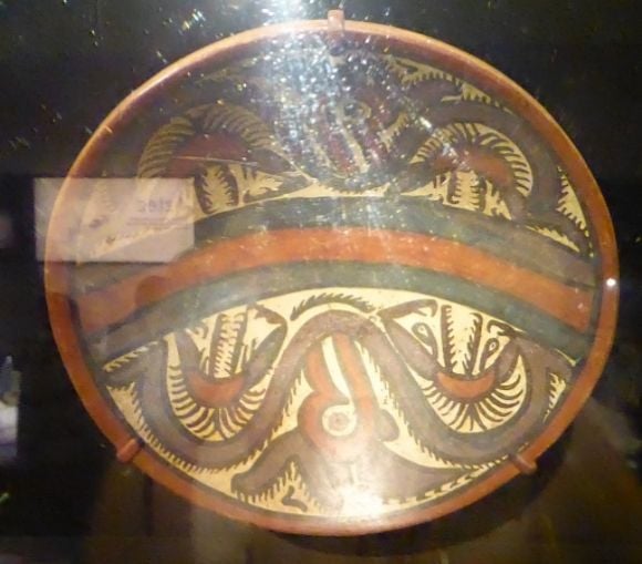 Shown above is a Cocle plate with mirrored halves shown an abstract crab and deer motif. The Cocle culture flourished in Panama from about 800 CE until 1100.