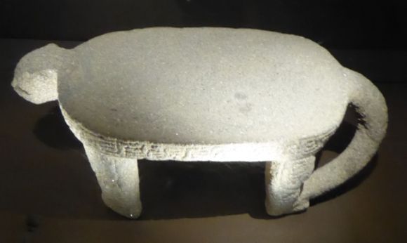 “Because the metate was important for grinding maize into flour, scholars believe that it became a symbol for transformation from death to rebirth. This metate was carved in the shape of a jaguar—an important spiritual symbol in ancient Latin America.”
