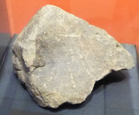 Shown above is a petroglyph (rock carving) with a cross-hatch designs. Artifacts such as this are difficult to date.