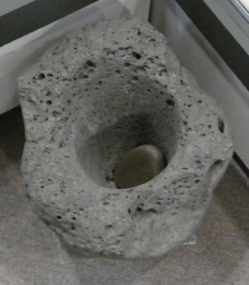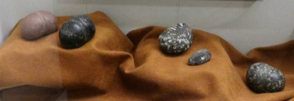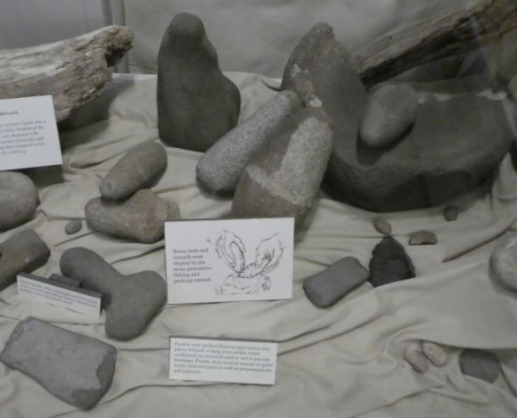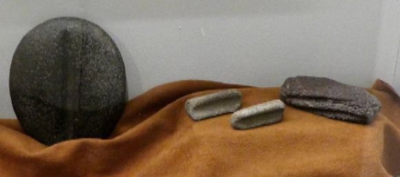 The stone artifacts shown above include what appear to be hammerstones and an atlatl weight.