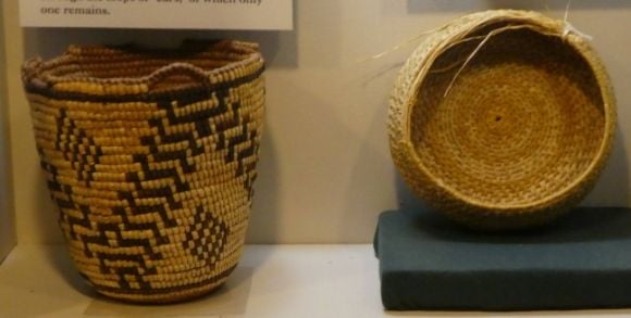 The basket on the left is a child’s berry basket and the basket on the right is a small basket made for the tourist trade.