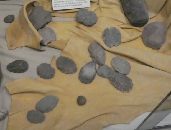 Shown above are cobble choppers. These were a general purpose tool used for chopping and scraping.
