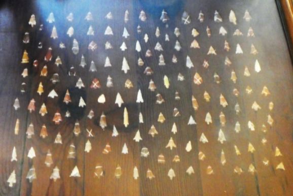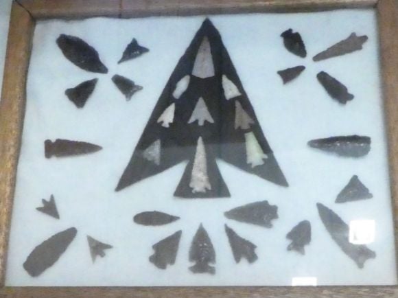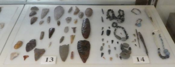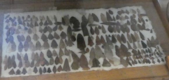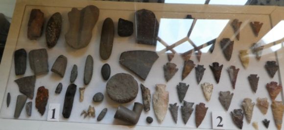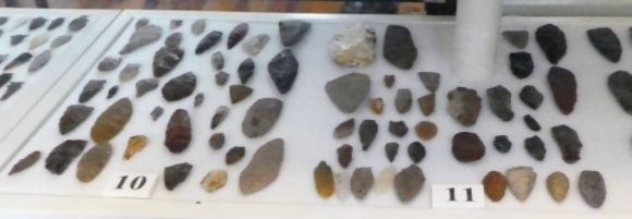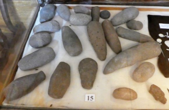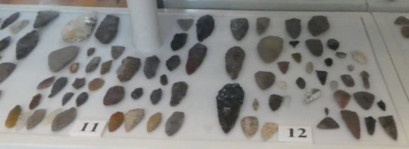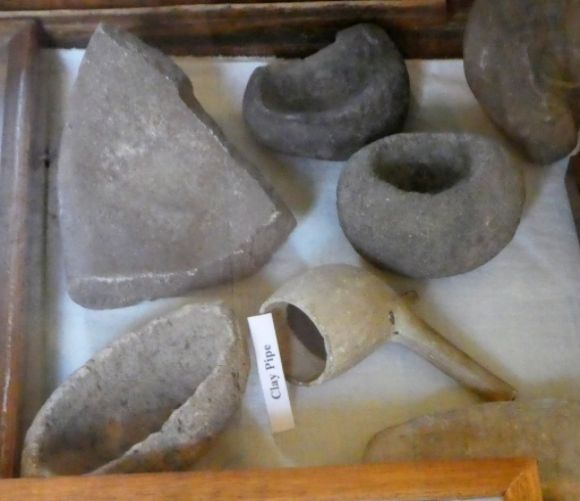 Included in this collection of artifacts is a stone shaft-straightener (that’s the stone with the deep groove in it) and a stone pipe.
