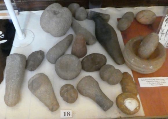 The stone tools shown appear to be primarily pestles and manos used for processing seeds and grains.