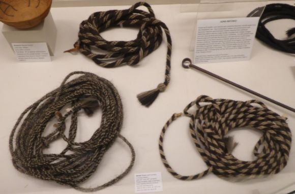 Shown above are some horsehair ropes and lariats (wánal) made in the late nineteenth and early twentieth centuries. The Spanish missions introduce cattle ranching to the Cahuilla.