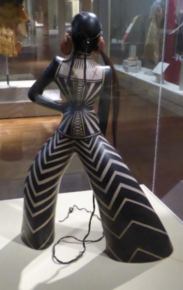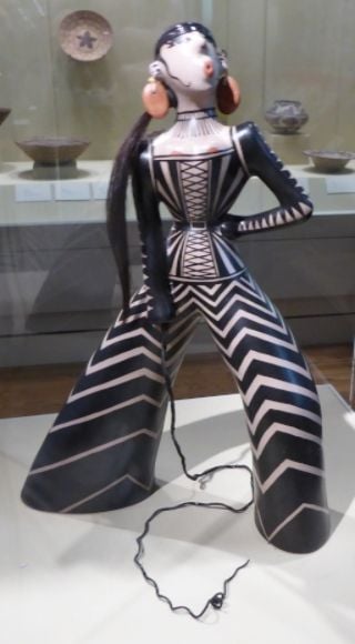 The clay figure shown above was made by Virgil Ortiz (Cochiti Pueblo) in 2009. The black color is from wild spinach.