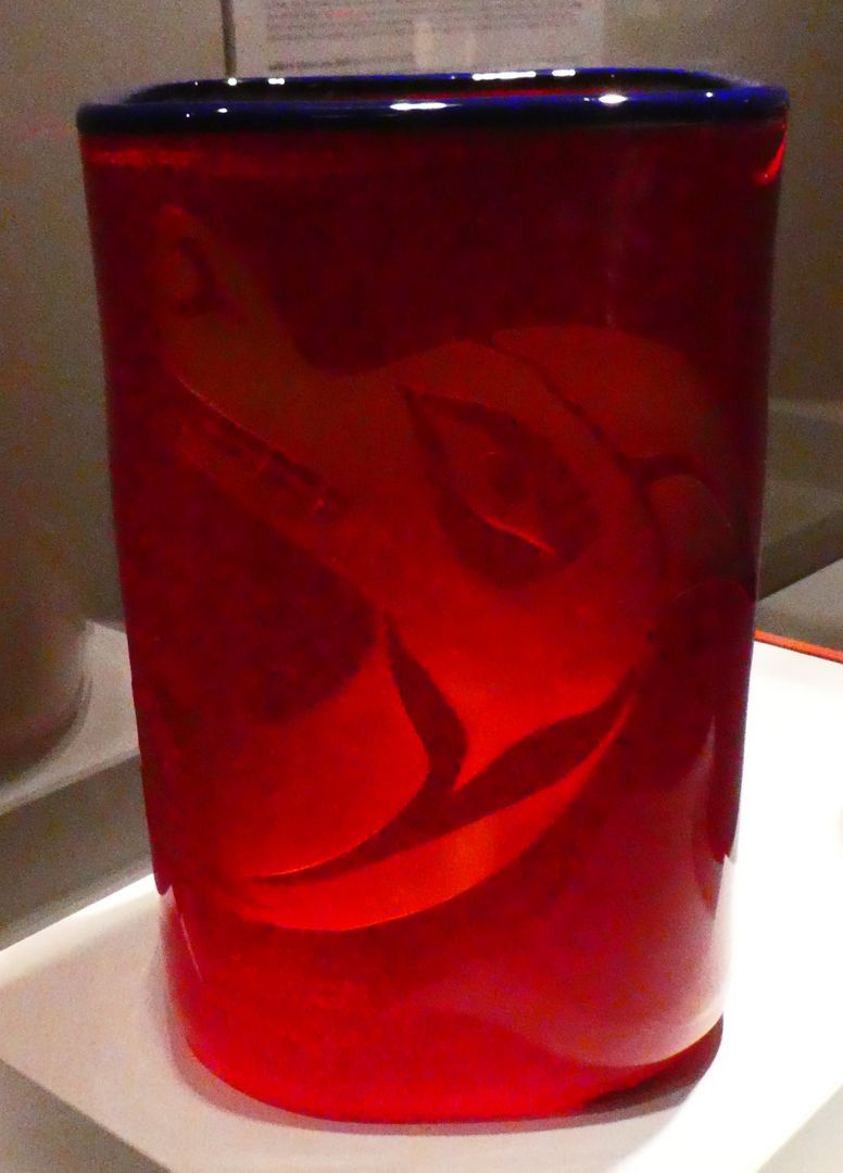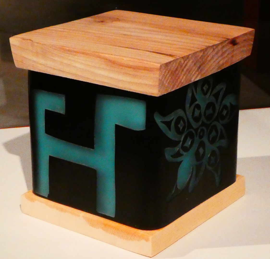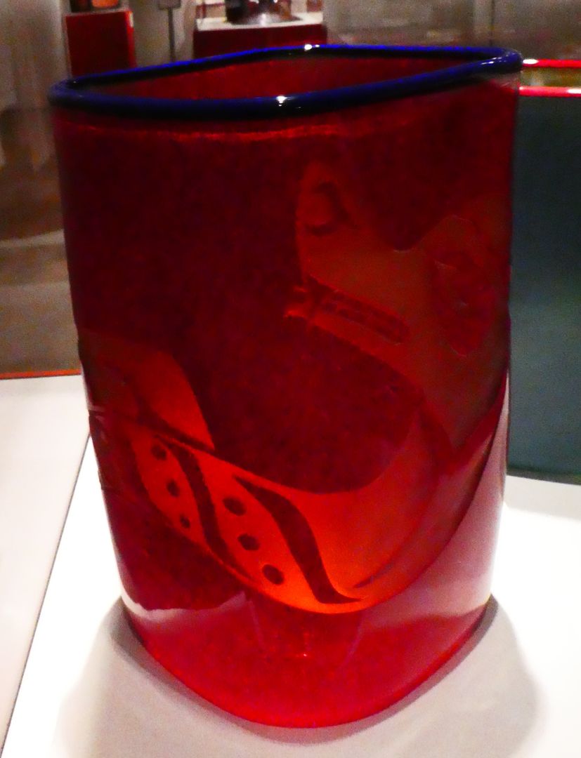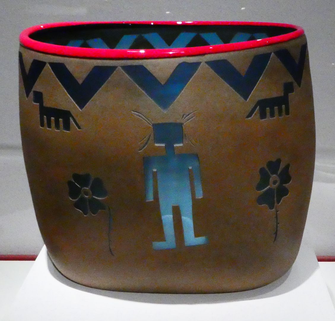 Shown above is Yayista (2015-2018) by Delbert Miller and Jack-lyn Smith. This is blown and sand-carved glass.