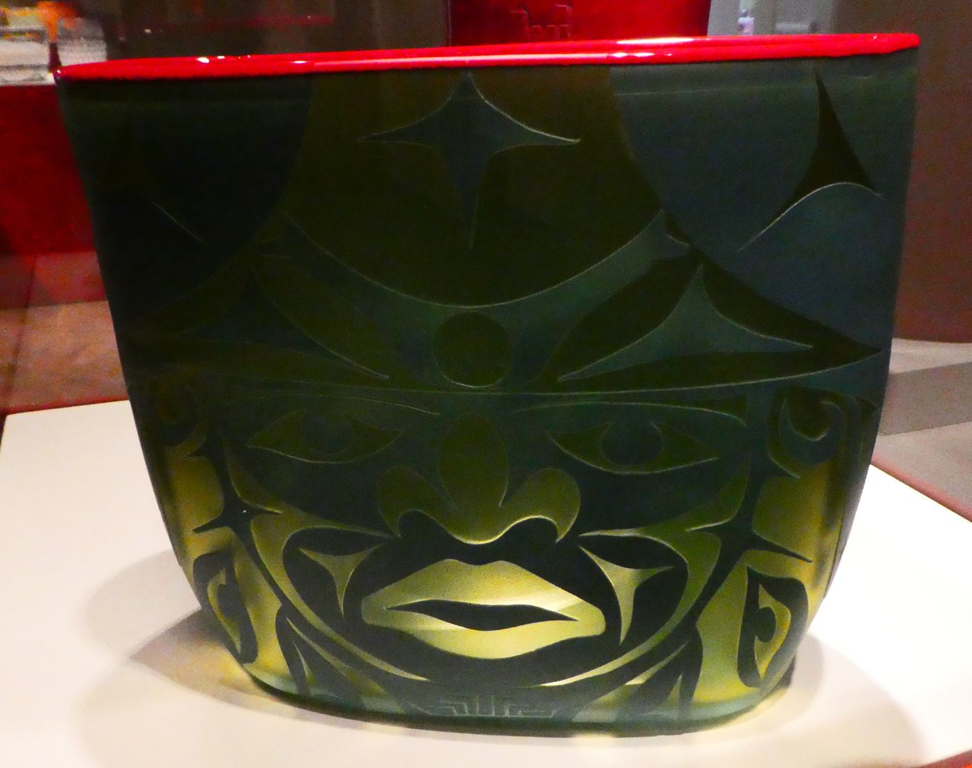 A special exhibit at MOG, entitled Transitions: An Exploration of Glass by Northwest Native Carvers and Weavers, featured the works of some of these American Indian artists.