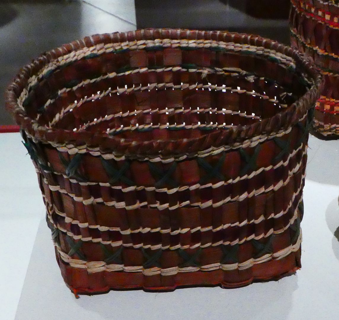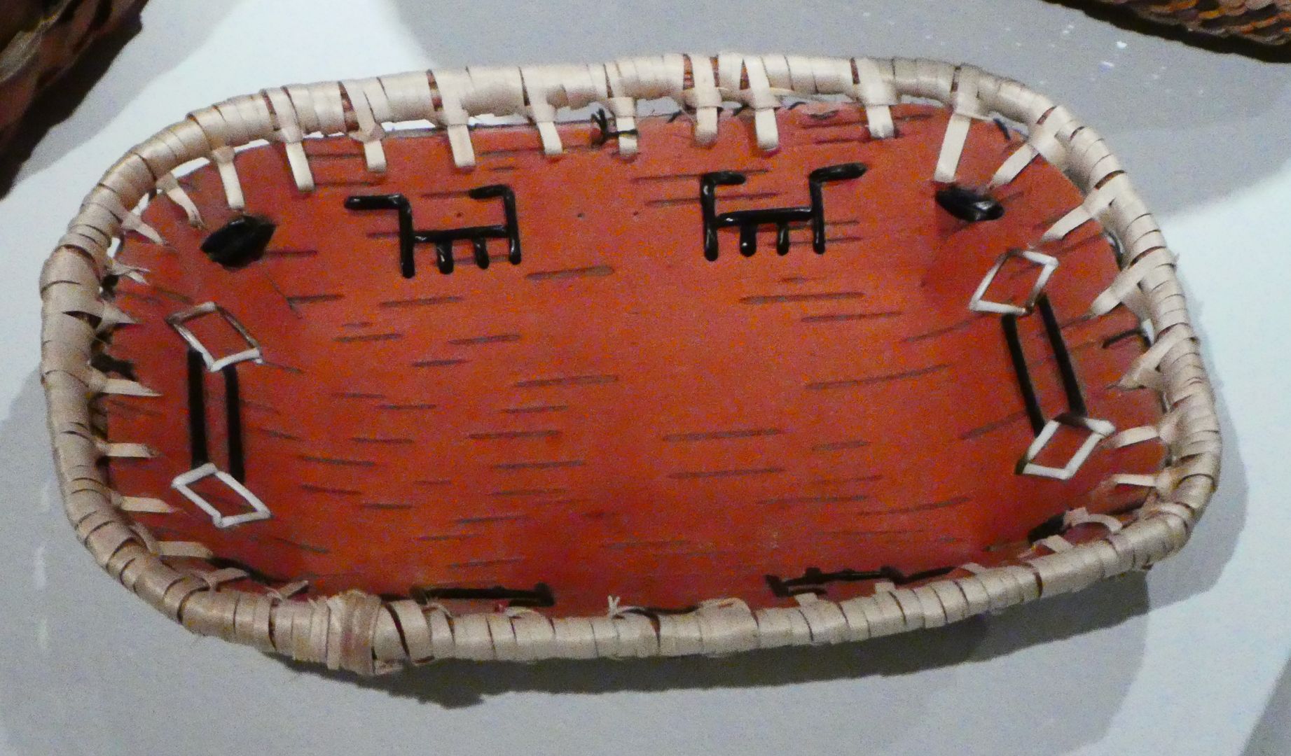 Shown above is Shared Wealth (2014). This is birch bark, porcupine quills, black ash, and sweet grass.