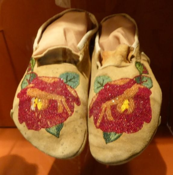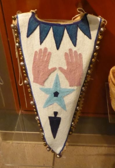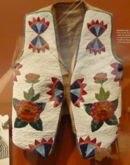 The buckskin vest shown above was made between 1900 and 1920 by Mis-Na-Kla, the mother of Louise Showaway.