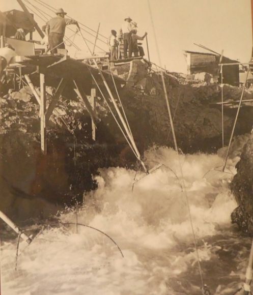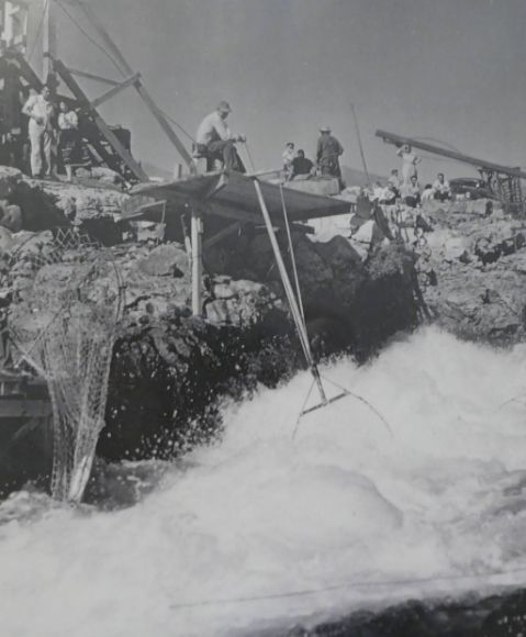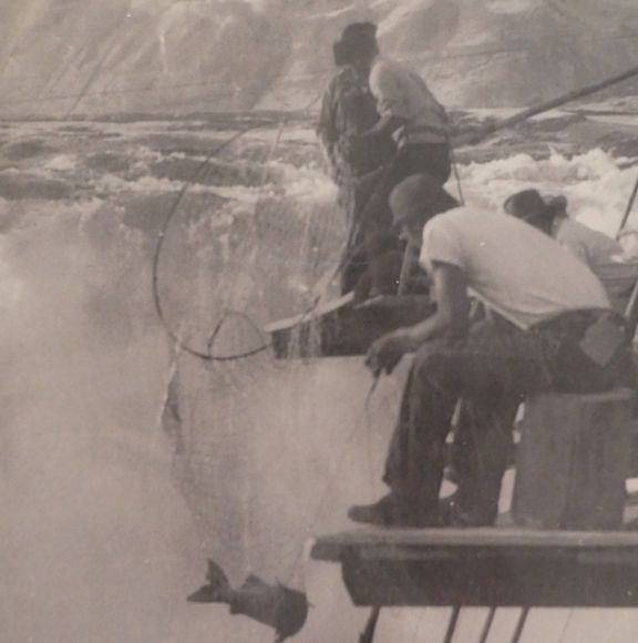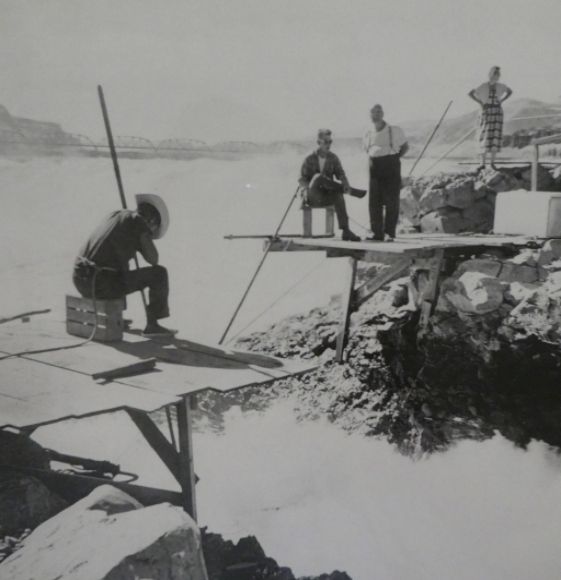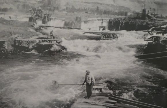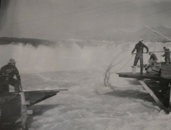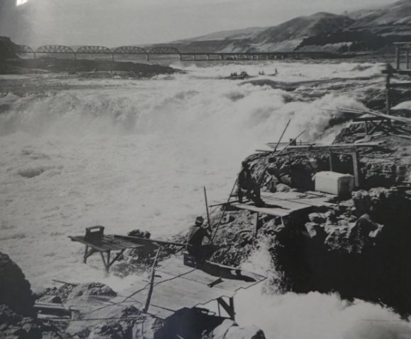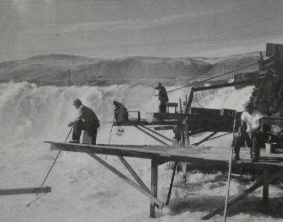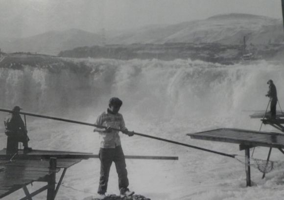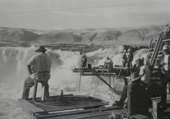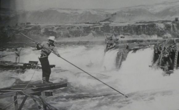 The Fort Dalles Museum in the Dalles, Oregon, has a number of old photographs documenting Indian fishing on the Columbia River prior to the completion of the Dalles Dam which inundated the traditional fishing areas.