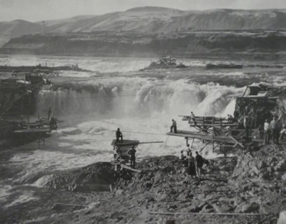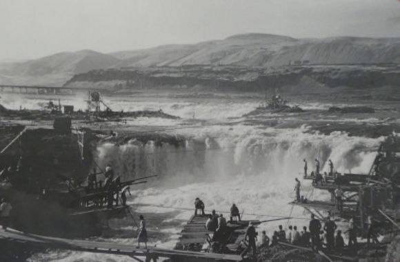 “People gathered to watch as the inundation slowly filled the canyons and sites of ancient villages, radically changing the face of the Columbia Gorge forever. The roaring falls at Celilo, the focus of fishing and a vast trading network for thousands of years, as well as a center of social and mythological importance, gradually fell silent as it too sank beneath the rising tide of water and the needs of modern ways of life.”