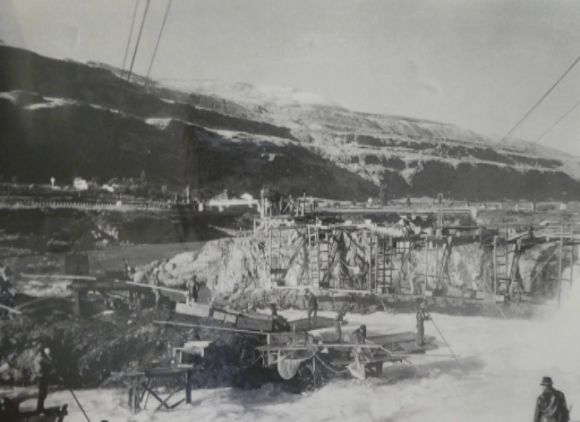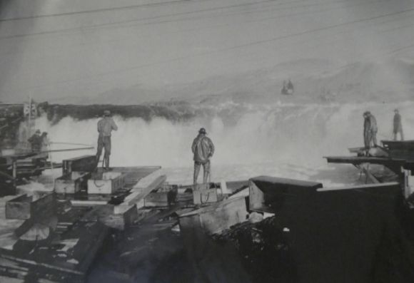 This photograph was taken in 1955. It shows the Five Mile Rapids.