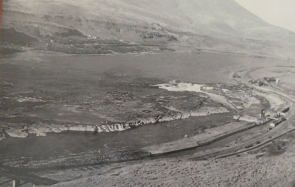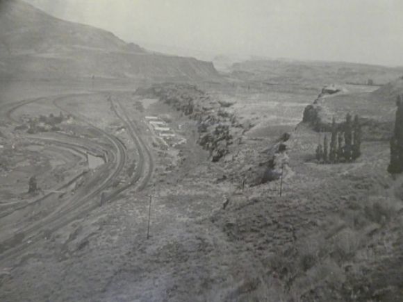 The white buildings in this 1956 photograph are the government housing built for the Celilo Indians.