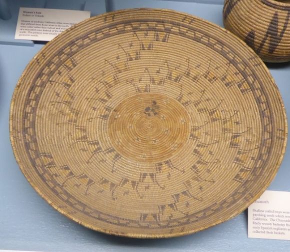 Shown above is a Chumash coiled tray which was used for winnowing and parching seeds. This is on display in the Maryhill Museum of Art near Goldendale, Washington.
