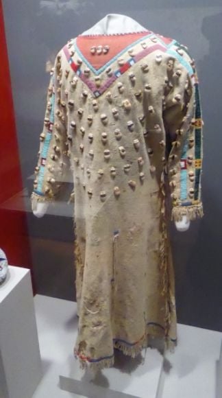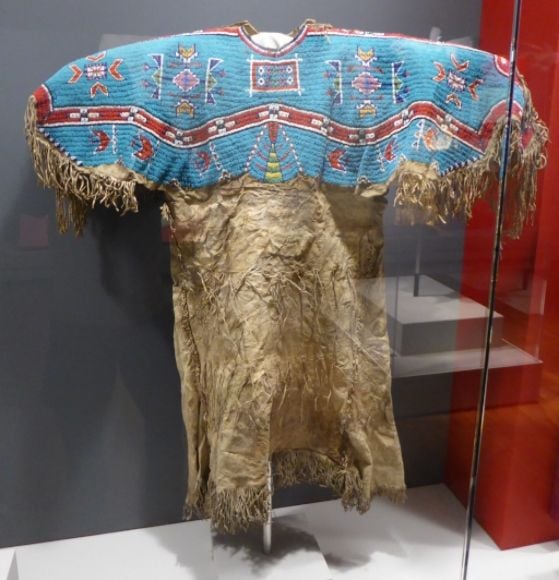 photo P1060813_zps2aaforo3.jpg Shown above is a Sioux dress made in 1820. It features glass beads on hide.