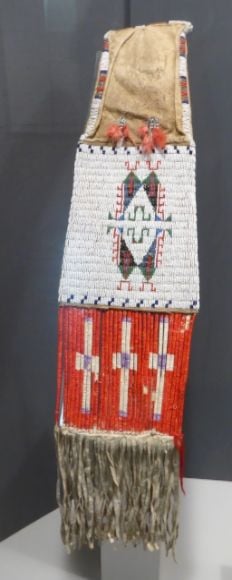 photo P1060820_zpsjhlzqlux.jpg Shown above is a Cheyenne pipe bag made about 1890. It is decorated with glass beads and porcupine quill.  photo P1060868_zpsgsp0ziyg.jpg Shown above is a Blackfoot bandolier bag made about 1940.