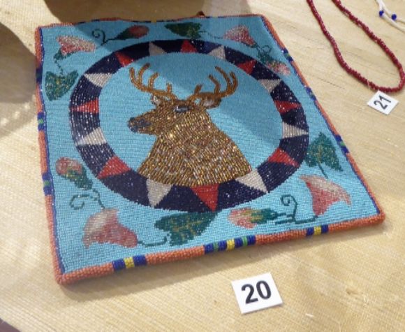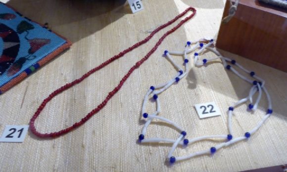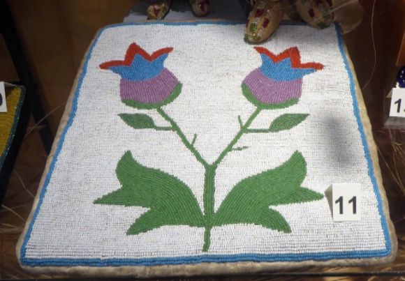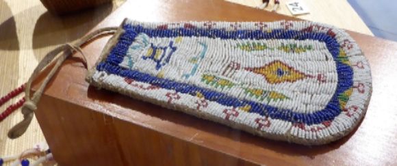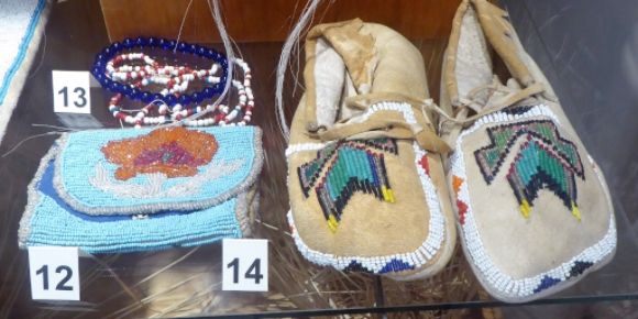 Shown above are: (12) a beaded purse, (13) a blue bracelet, and (14) a pair of beaded moccasins.