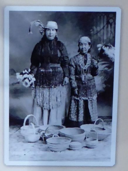 Shown above is a old photograph of Siletz weavers displaying their baskets for sale.