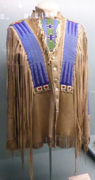 Shown above is a man’s jacket. The bands of beadwork over the shoulders and down the sleeves is typical.