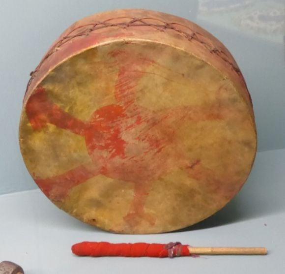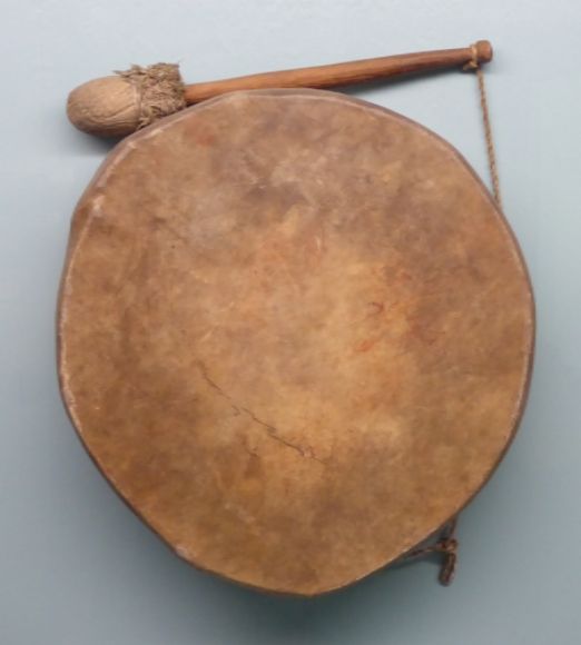 “Native American drums were usually made by stretching skin over a wooden frame. The drum typically had only one head. Drumsticks were made by wrapping layers of leather around the end of a stick. Drums, flutes, whistle, rattles, and rasps were the major musical instruments used in North America.”