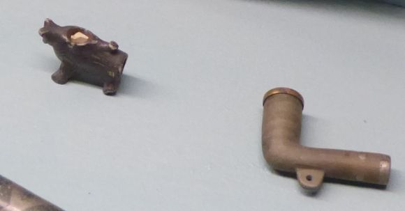 The large pipe on the bottom is a T-shaped pipe which has been decorated with lead.