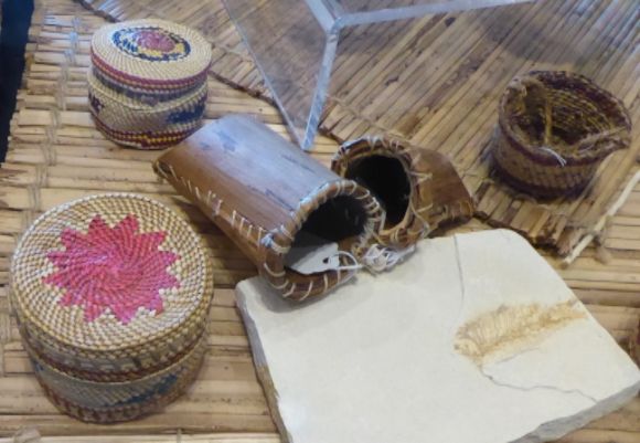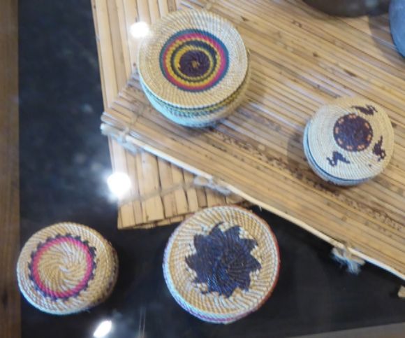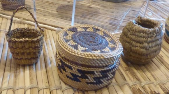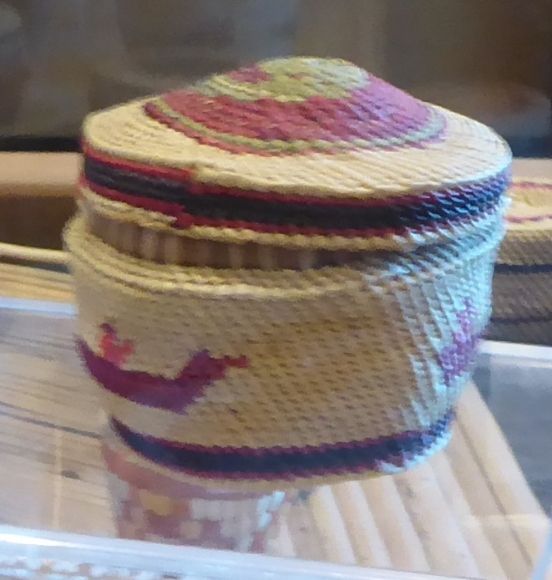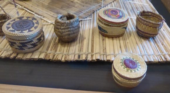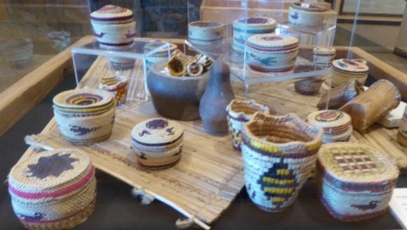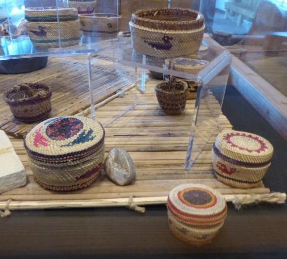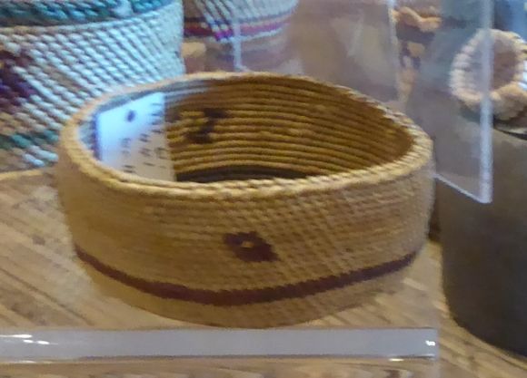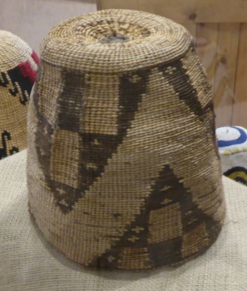 The Columbia Gorge Discovery Center in The Dalles, Oregon has displays of Columbia River basketry hats and small trinket baskets.