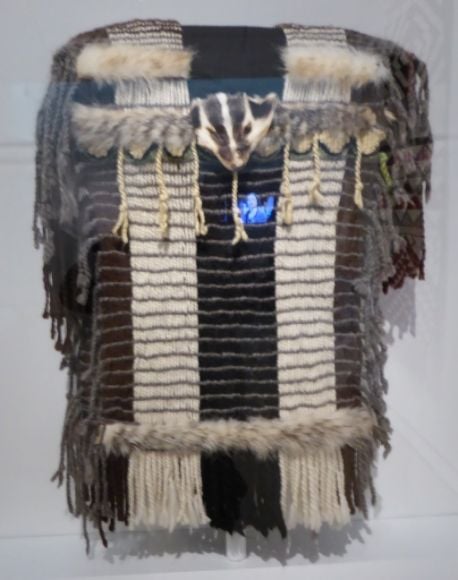 photo P1070415_zpsqeim8y38.jpg Shown above is Warrior’s Pride done in 2002 by suiyay (Gerald Bruce Miller, 1944-202).  photo P1070417_zpsjahh8bog.jpg Shown above is Reflections made in 2016 by teeweewas (Tillie Jones).  photo P1070419_zpsxfoxbma5.jpg Shown above is Our Healing made in 2016 by sa’hLa mitSa (Susan Pavel).  photo P1070421_zpsbsqdt5me.jpg Shown above is Raven Enlightens the World made in 2012 by quhla-ay-hlup (Misty Kalama-Archer). This was made using wool blend hand spun yarn, commercial dyed wool yarn, artic fox fur, and copper cones.  photo P1070423_zpshksh60ge.jpg Shown above is Chief’s Lightning Regalia made in 2012 by by quhla-ay-hlup (Misty Kalama-Archer). This was made using wool blend hand spun yarn hand dyed with Native plant dyes, abalone shell buttons, deer hooves, and artic fox fur.  photo P1070425_zpsi3zc7d8g.jpg Shown above is Flying Geese High Class Vest made in 2016 by Sulcadeblu (Renee Kalama) and Sealth ertsa (Anne Mae Archer).