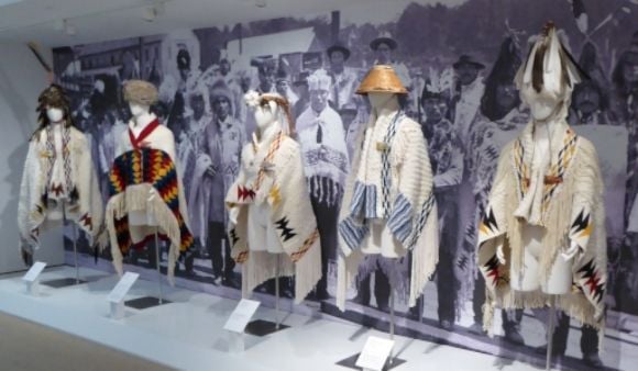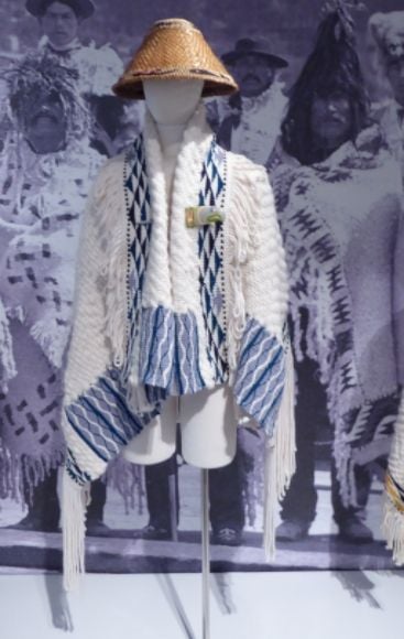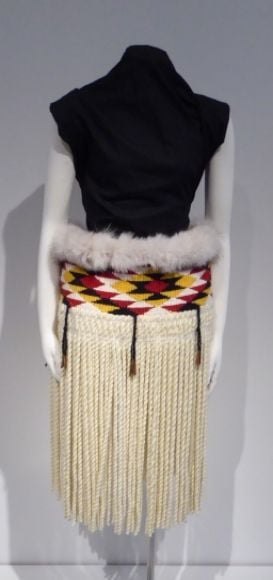 “For the occasion, ceremonial regalia such as wool robes, headbands, capes, hats and belts were woven. This was the las time that a weaving project of such magnitude was undertaken by Squamish weavers.”