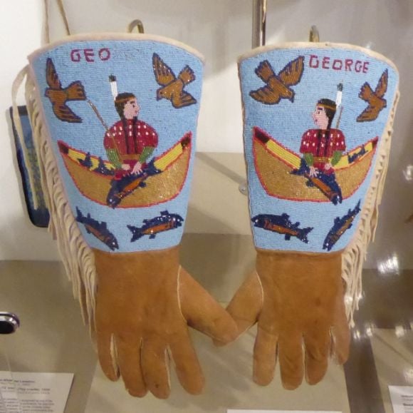 Shown are beaded gauntlets by an unknown Nez Perce artist. These were made about 1915.