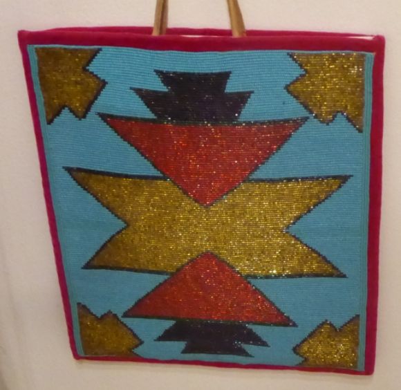 Shown above is a contour-beaded flat bag by Sophie George (Wasco/Cowlitz/Wenatchi). This was made in 2016. The artist is a well-known regional beadworker.