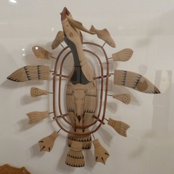 Shown above is a hoop spirit mask (loon and wolf) made by Yup’ik artist Walter Tutqir Amos in 1978.