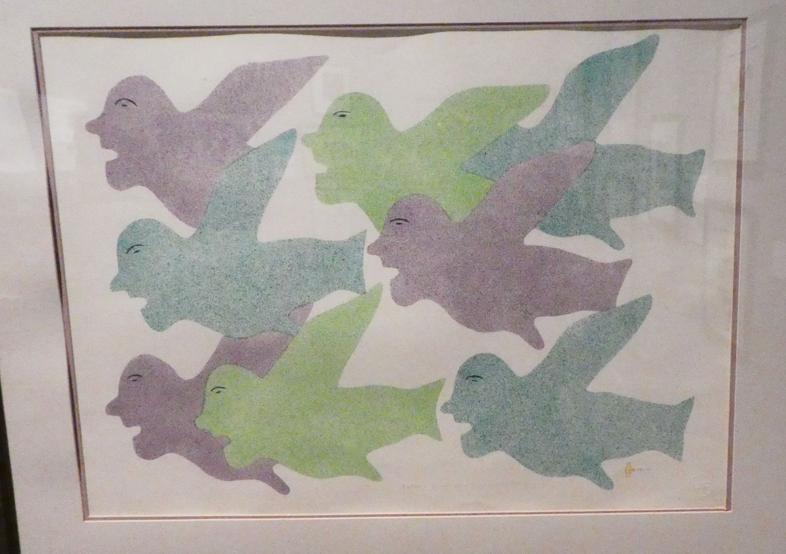 Shown above is Thinking of Flying by Aningnerk Kookeeyont, a stencil made in 1979.