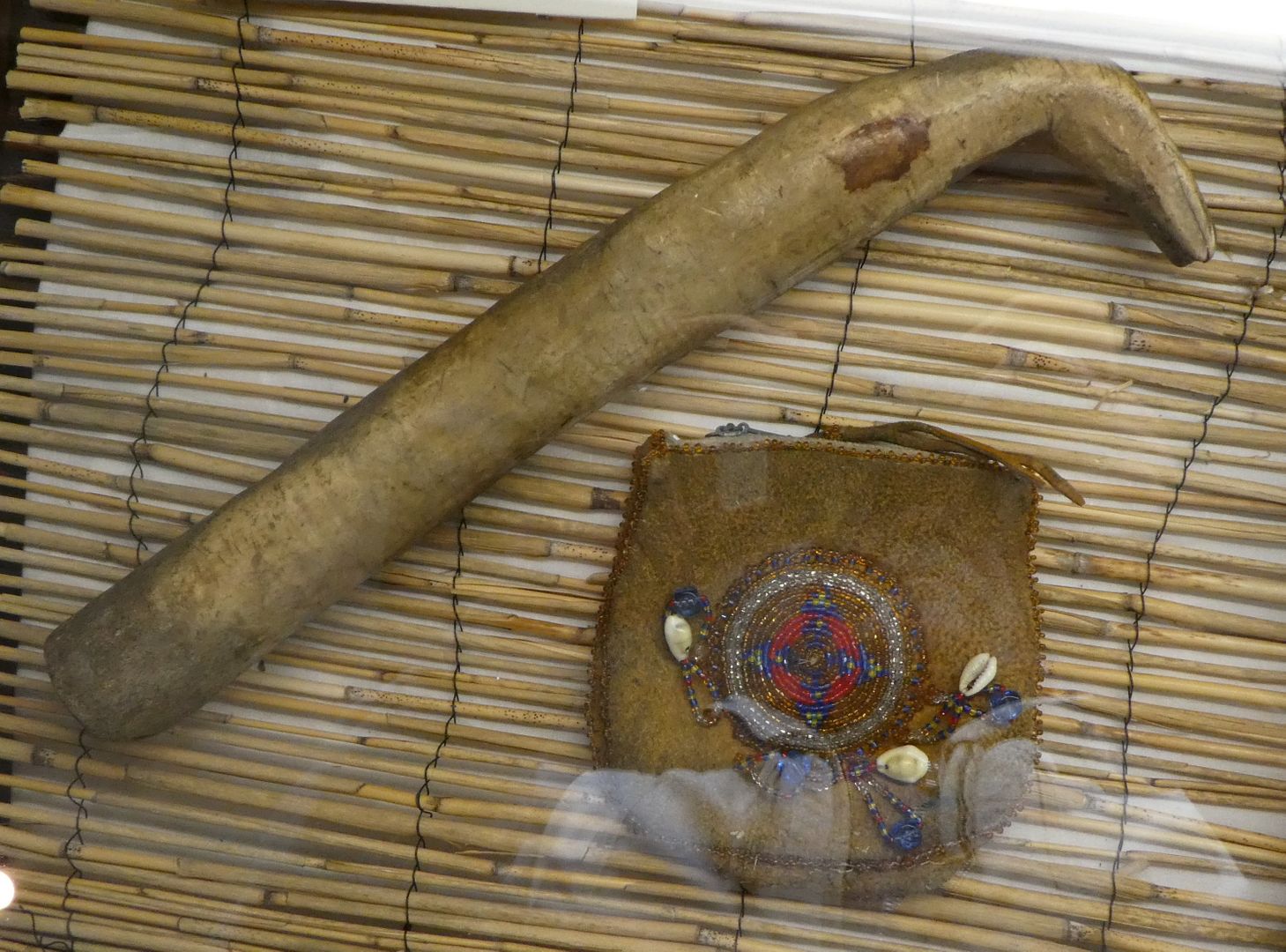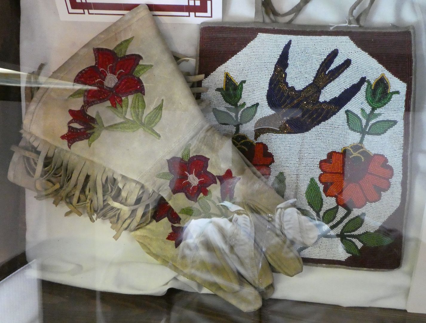 Shown above are beaded gloves and a beaded bag. These are from the Spokan tribe and date to the 1930s.