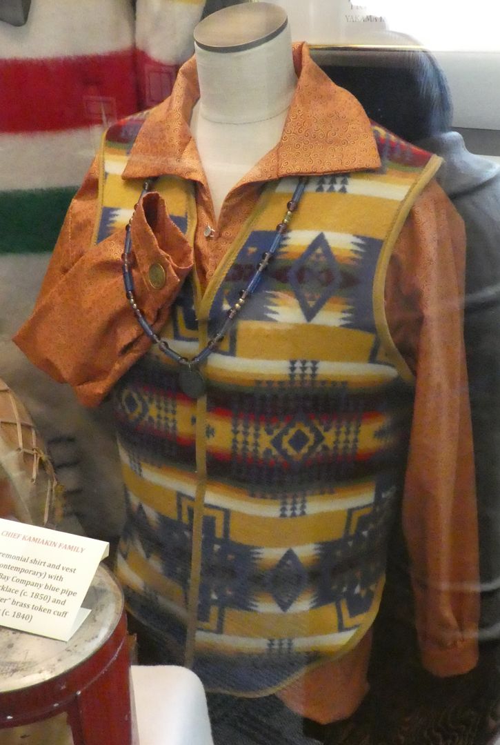 Shown above is a ceremonial shirt and modern Pendleton vest.