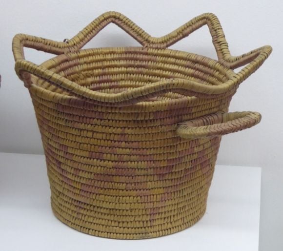 The baskets shown below were made for sale to non-Indians. The elaborate looped rim and ring handles are an indication that the basket was made for the tourist trade.