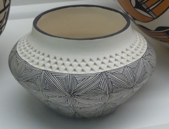 Shown above is a black-on-white jar made about 1990 by Viola Ortiz.
