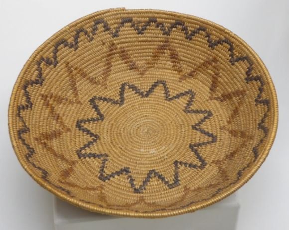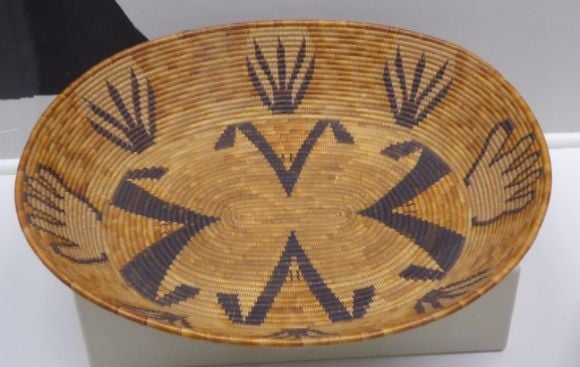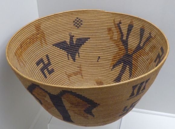 photo P1130520_zpsi7a1zxmu.jpg Shown above is a gathering basket (sáqwaval) made between 1890 and 1910. This basket shows no signs of having been used. It is decorated with eagles, lizards, bats, and other animals and plants.  photo P1130522_zpsbyj8rhcn.jpg Shown above is a basket bowl (kávamal) made about 1900. This basket features a plant motif.  photo P1130524_zpszldr6j24.jpg Shown above is a basket bowl (kávamal) made by Antonia Apapas Casero from the Cahuilla Reservation about 1930.  photo P1130526_zpsy7ri4afr.jpg Shown above is a basket bowl (kávamal) made by Antonia Apapas Casero from the Cahuilla Reservation between 1920 and 1930.  photo P1130528_zpsp56ryvhd.jpg Shown above is an oval basket bowl (kávashmal) made about 1920. This basket features six agave plants and two human hand designs.  photo P1130532_zpsfjxsaka6.jpg Shown above is a quail trap (láhmeah qáxal) made before 1910.