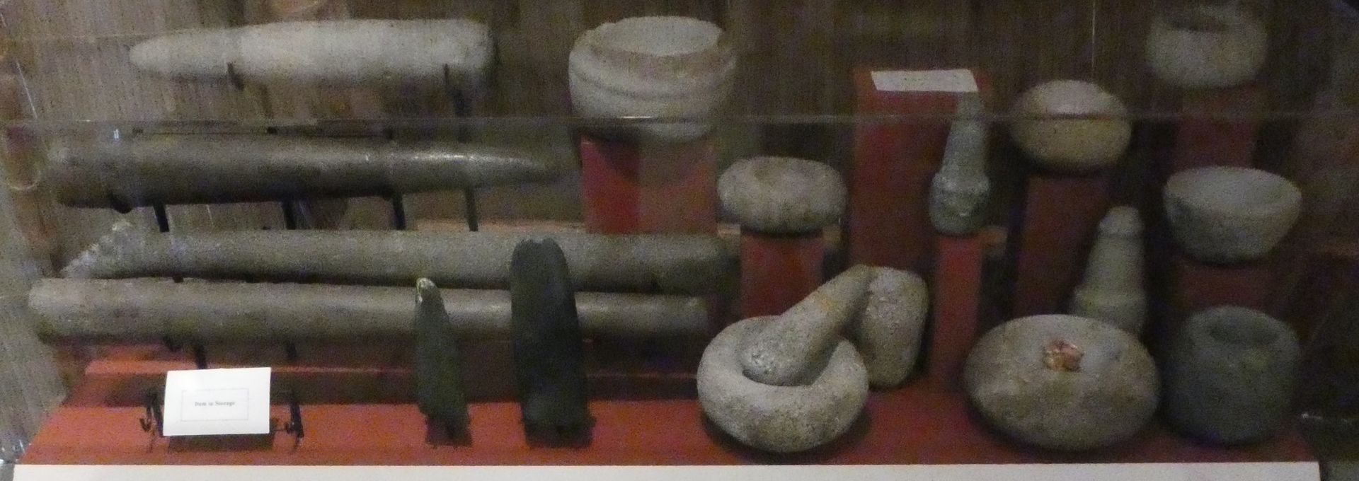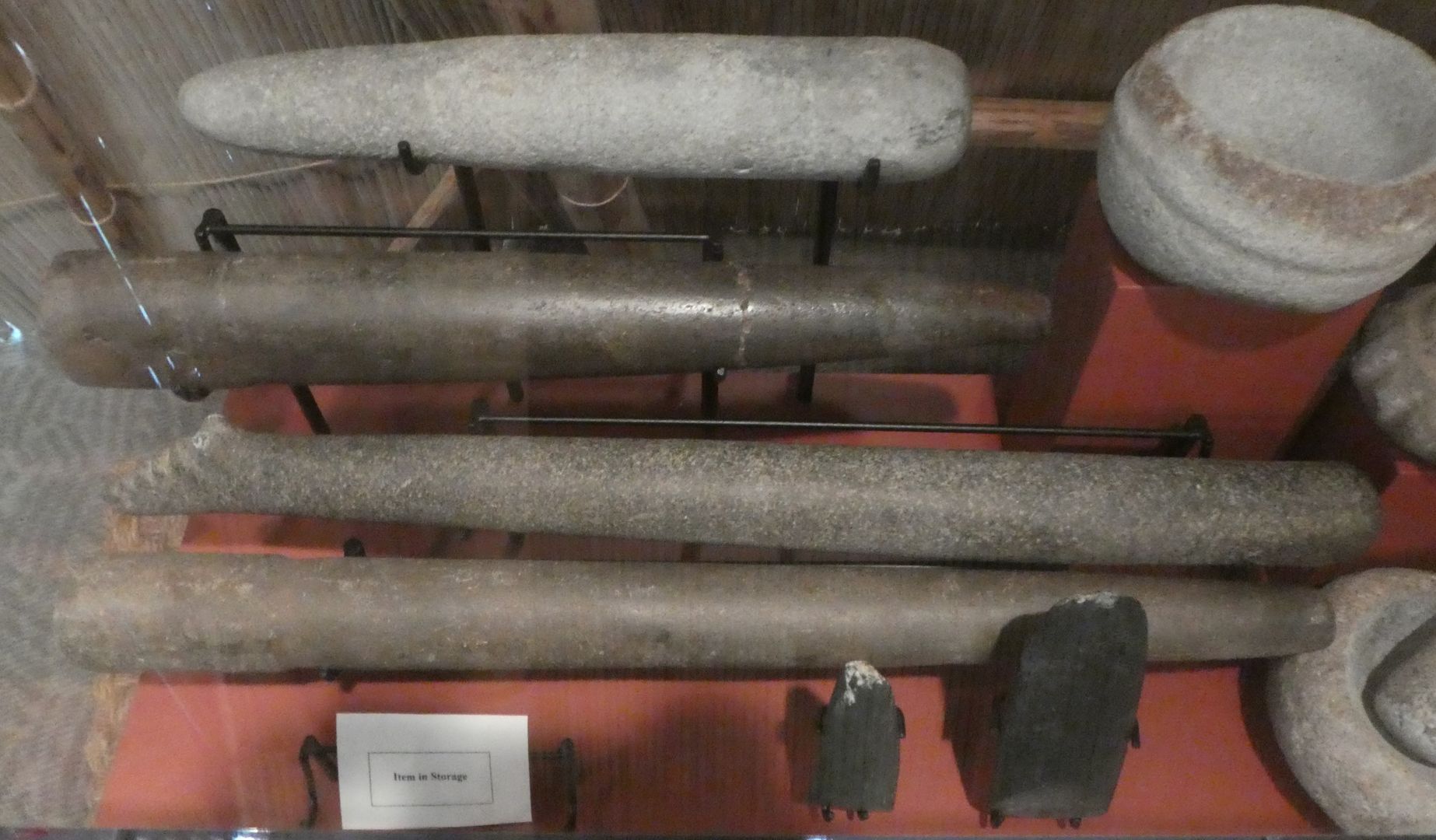 “The Plateau tool kit included a variety of tools used by women and men. Women used mortars and pestles to grind and pound food, scrapers to clean and prepare hides, knives to clean and fillet salmon, and needles and awls to sew tule mats and weave baskets. Men used adzes and mauls for carving canoes and building fish weirs, knives to carve weapon shafts and cut lodge poles and sharp stone points for hunting and fishing.”