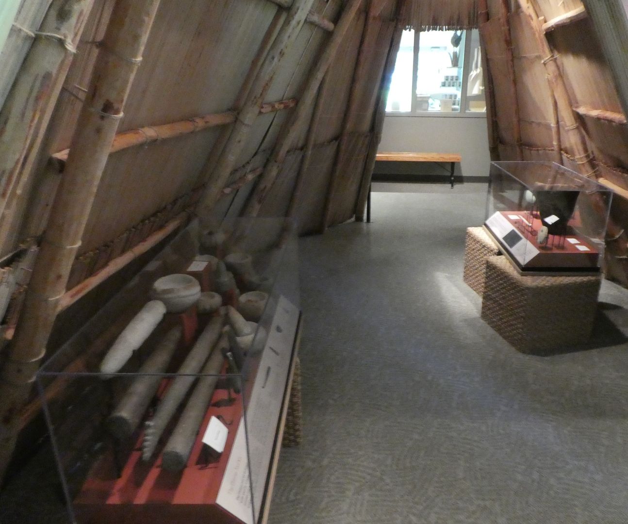 The museum uses the interior of the longhouse to display a number of Plateau Indian tools. According to the display: