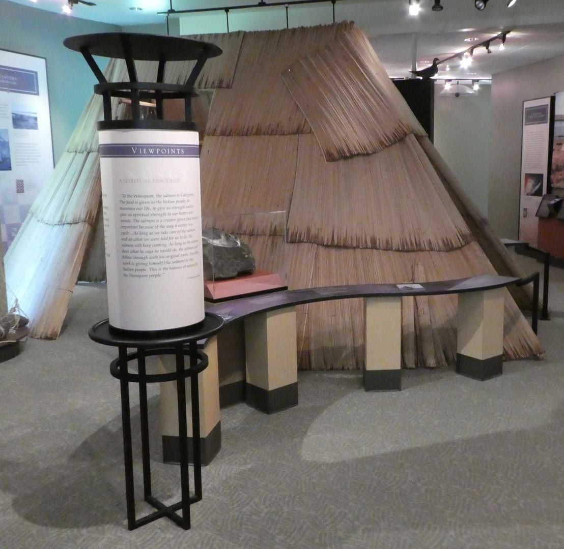 American Indian people have lived along the Columbia and Snake Rivers for thousands of years. The confluence of these two rivers served as a camping area, a trading center, and a fishing site. Today this is Washington’s Sacajawea State Park. One of the exhibits in the Sacajawea Museum in the park illustrates the Plateau longhouse.